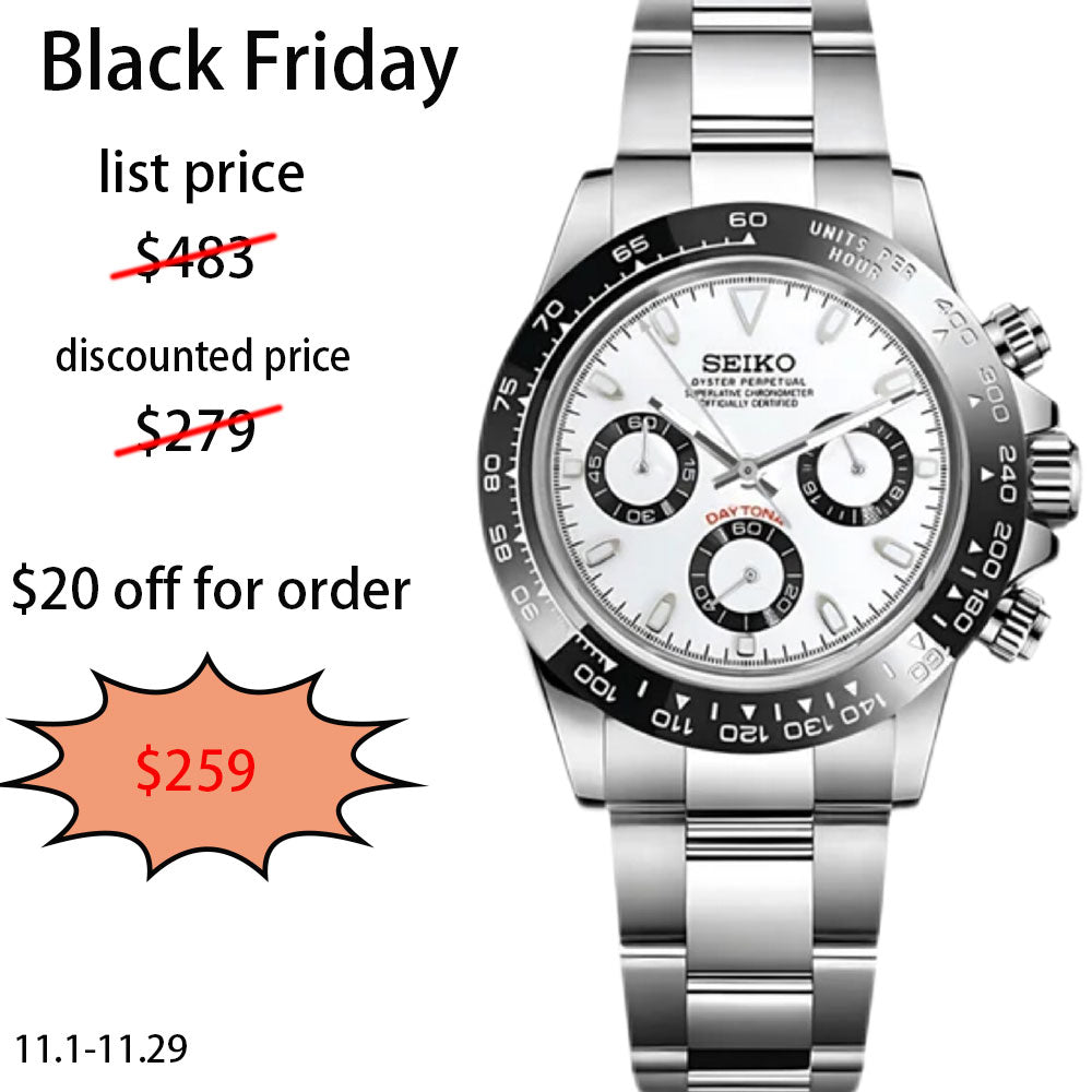 Elevate your style with the Daytona Panda , a custom Seiko VK63 Mechanical Quartz Watch, inspired by the iconic “Daytona” design. This unique timepiece features a Panda dial, encased in a 40mm stainless steel frame, offering a blend of elegance and precision for watch enthusiasts.